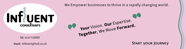 I believe the way I have designed the banner re-enforces the modern and warm feeling I wanted to reflect in the logo of influent, it feels accessible and friendly, it also appeals to a broader spectrum of audience and avoids alienating with overly complex language or imagery.