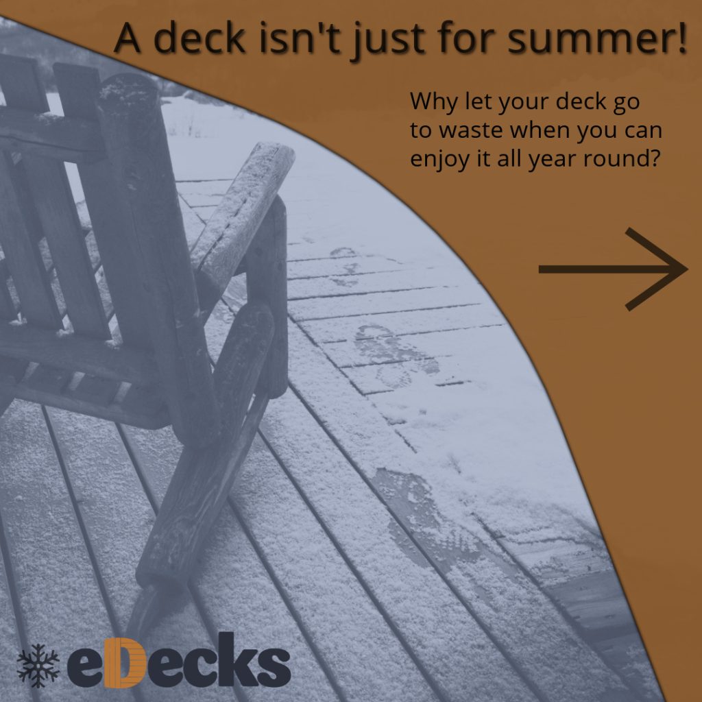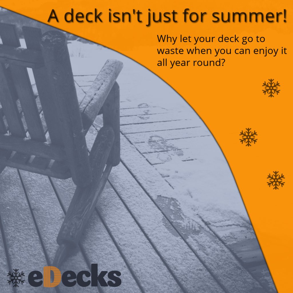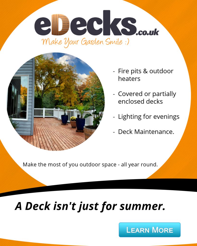 This is the after image I chose for the static post, I switched the the Orange for the background as it has connotations of warmth and happiness. I think used an image that look welcoming and cozy, an “ideal” winter garden. Helping to re-enforce that an eDecks customer could achieve this during winter.