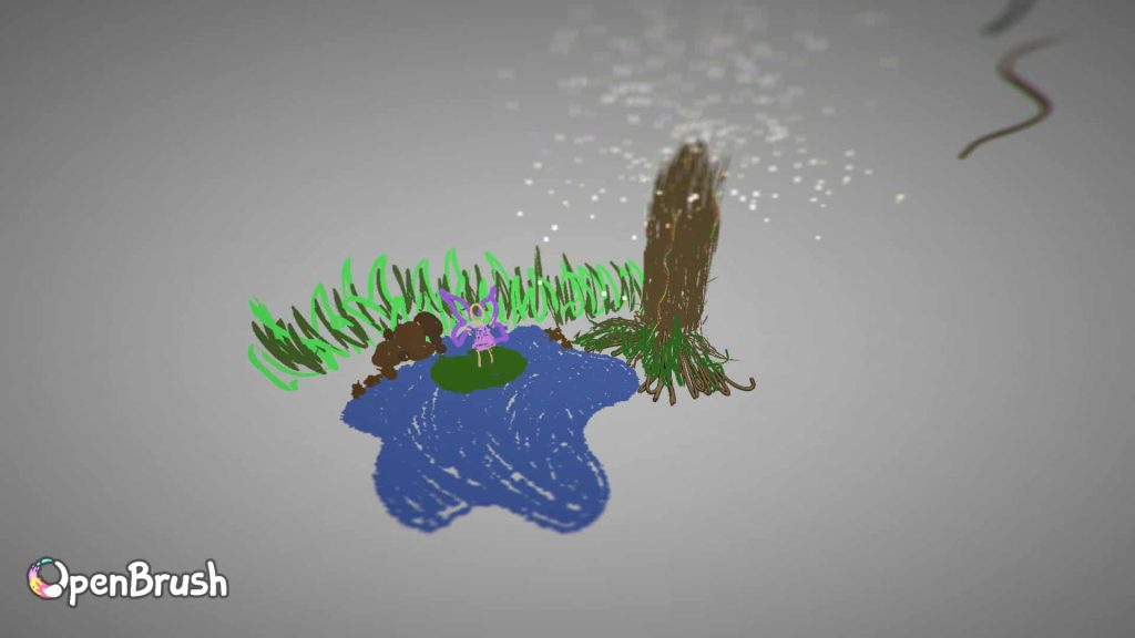 I created a small pond scene with a fairy and a tree, adding layered 3D elements for depth. I focused on scale, visual hierarchy, and flow. I Also focussed on how I could guide the viewer’s eye from the fairy to across the pond, then the tree – by using moving paint options to draw the users eye across. Hopefully this is the start to creating a balanced and immersive 3D environment through trial and practice.