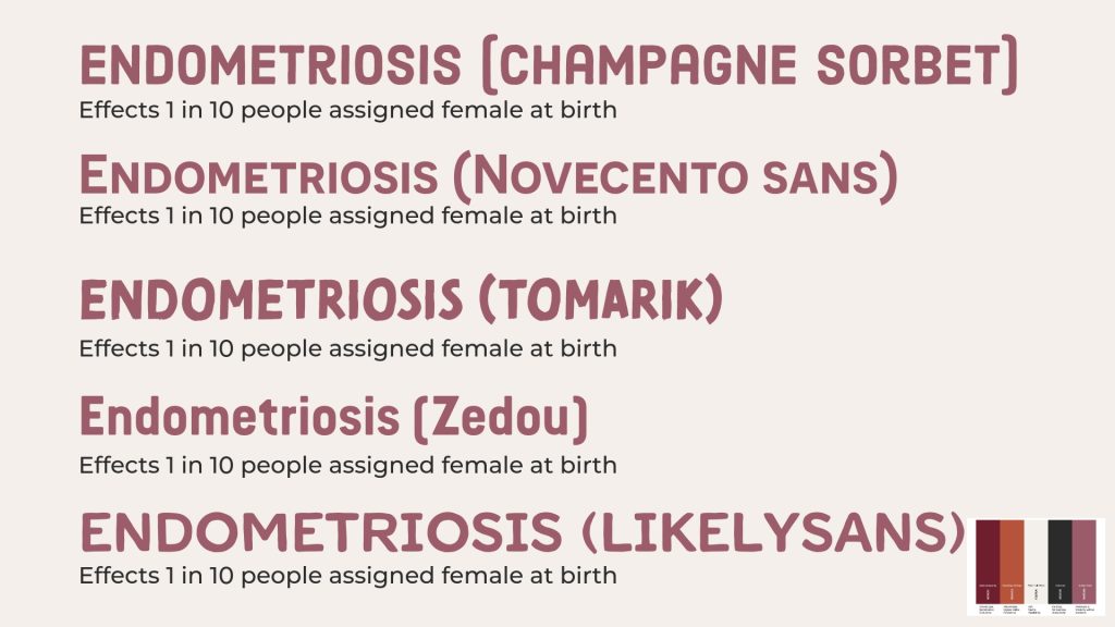 In terms of content, I am focusing on key areas such as common symptoms, how experiences can vary from person to person, the challenges around diagnosis, and current treatment options. Symptoms are approached carefully to reflect both their range and severity, while avoiding language or imagery that could feel distressing in public spaces. Treatment information is kept broad, recognising that there is no single solution and that managing endometriosis looks different for each individual.