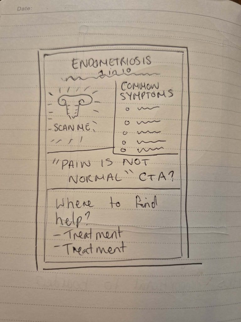 I aim to break down the thinking behind my designs and reflect on how print and AR can work together in a way that feels clear, respectful, diverse, and culturally inclusive. By the end of this project, I aim to produce content that makes the often invisible experience of endometriosis visible, in an accessible and empathetic way that broadens public understanding and supports those affected.